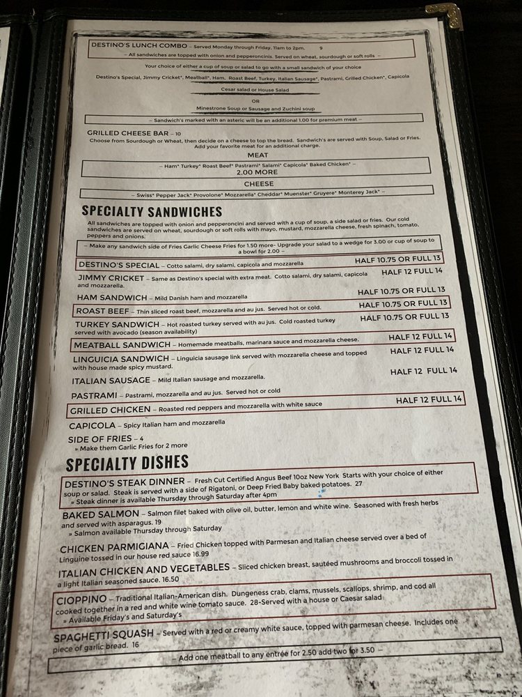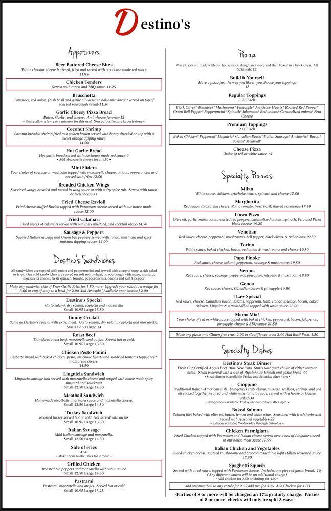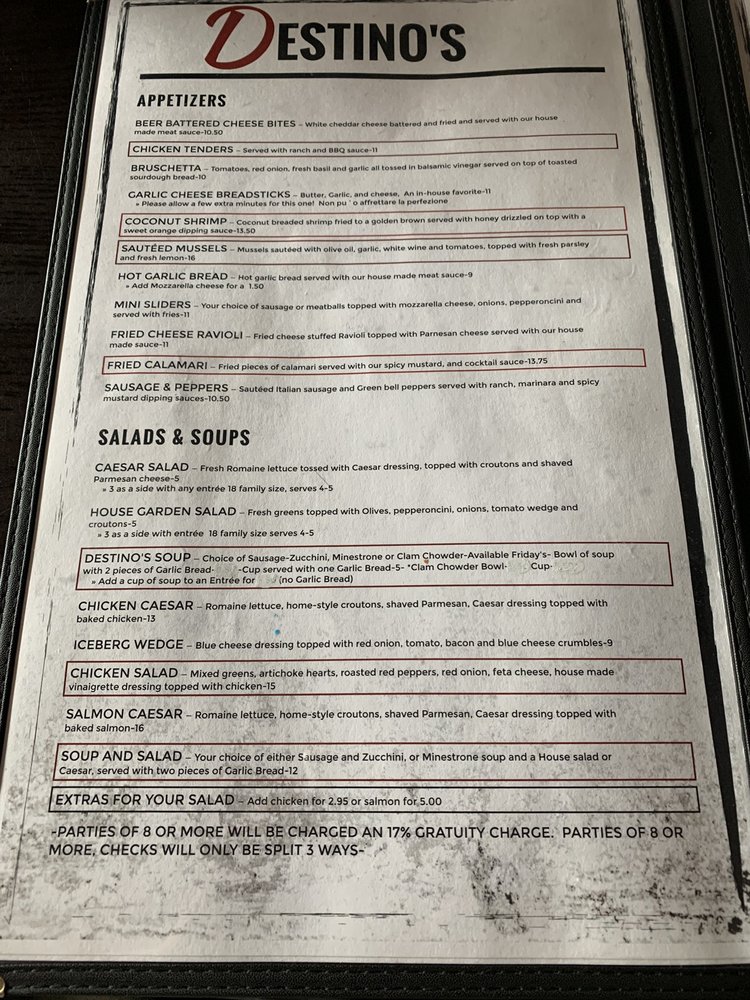 Destino's, a beloved Italian restaurant in Merced, offers a diverse menu featuring pizza, pasta, desserts, and more. Located at 460 W Main St, this trendy yet casual spot provides a warm and welcoming atmosphere with both indoor and outdoor seating options. Notable for its attentive service and generous portions, Destino's has received rave reviews for its delicious food and accommodating staff. Customers praise dishes like the Coconut Shrimp, Shrimp Scampi Linguine, and Margarita Pizza for their flavorful taste and quality preparation. The varied appetizers, including Bruschetta and Beer Battered Cheese Bites, add to the dining experience. With vegan options, happy hour specials, and a full bar, Destino's caters to a wide range of tastes and preferences. Whether you're looking for a relaxed lunch or a festive gathering, Destino's is a must-visit destination in Merced.